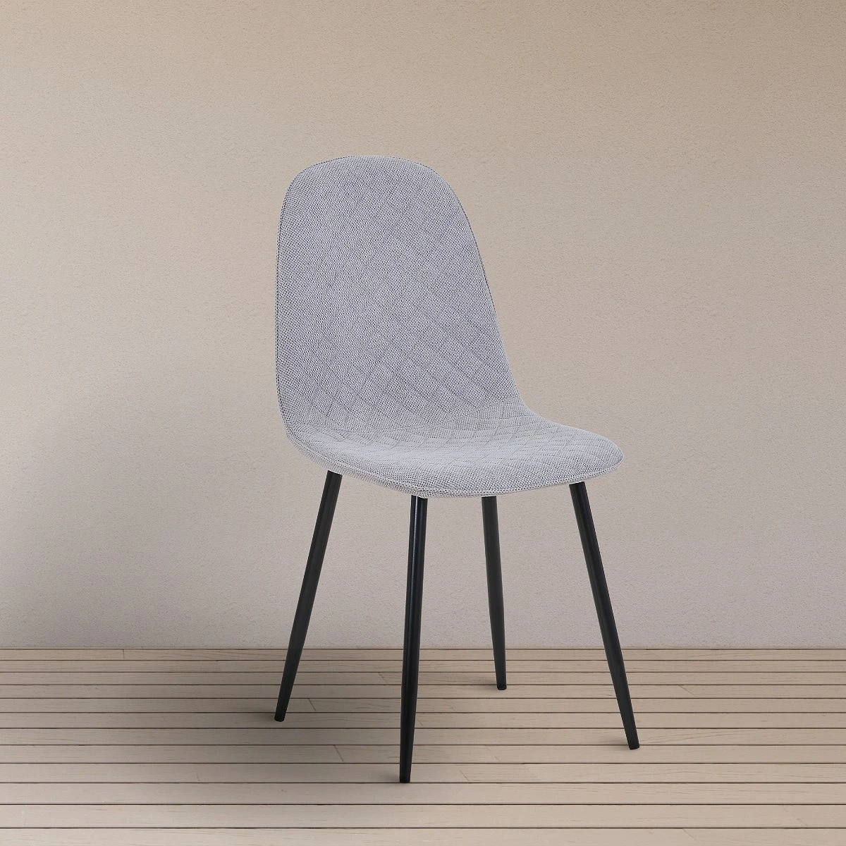Las patas metálicas no solo añaden estabilidad, sino que contrastan con el tapizado para generar una estética moderna y equilibrada. Es una silla que no pasa desapercibida, pero que tampoco abruma, adaptándose con naturalidad a diferentes estilos decorativos.