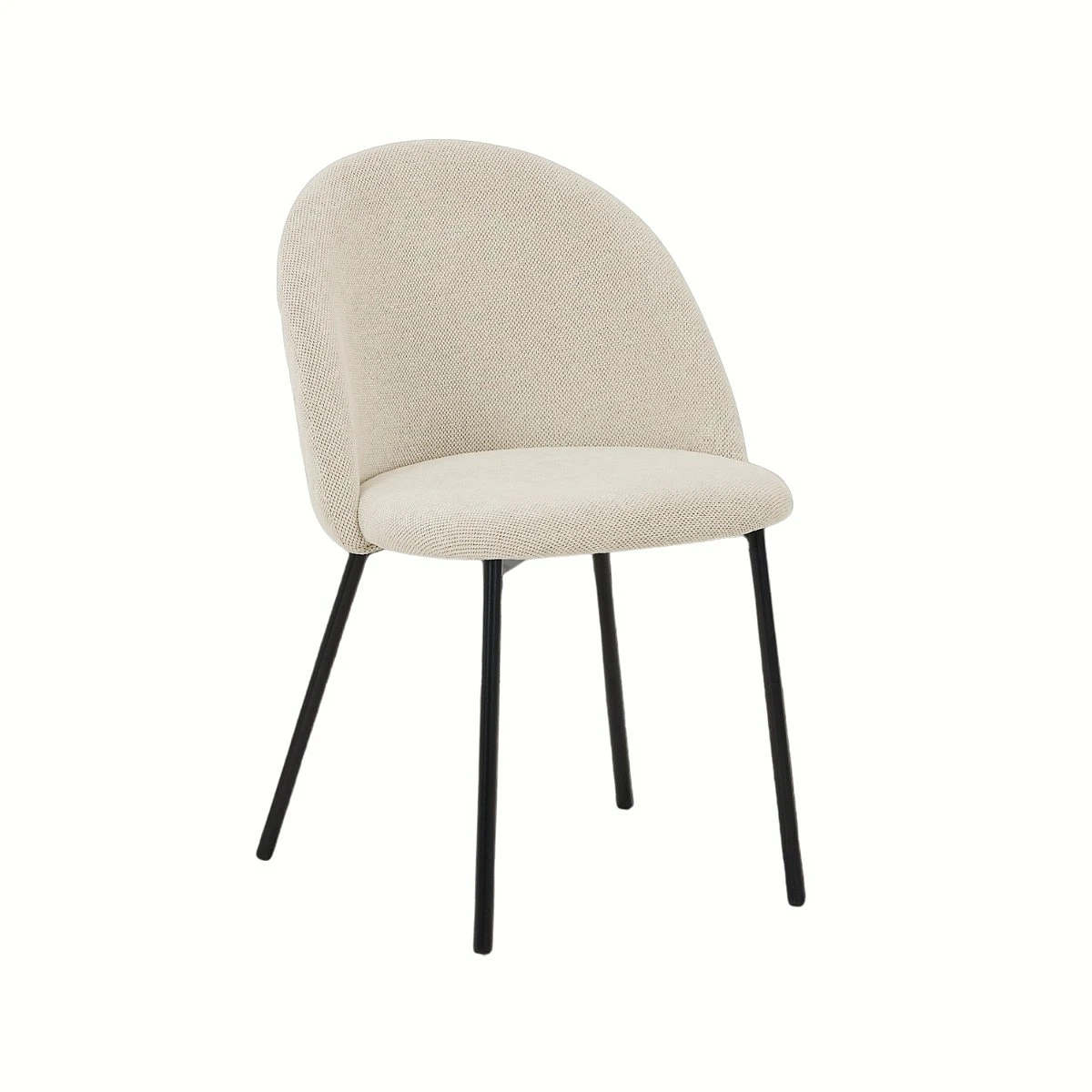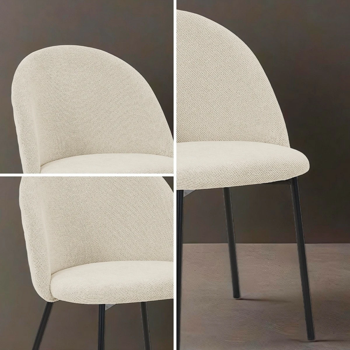 Disponible en beige, gris y perla, esta silla ofrece una paleta de colores que aporta serenidad visual y se adapta a distintos estilos decorativos. El tejido del tapizado es agradable al tacto y tiene una textura sutil que añade profundidad y carácter sin resultar recargado.
